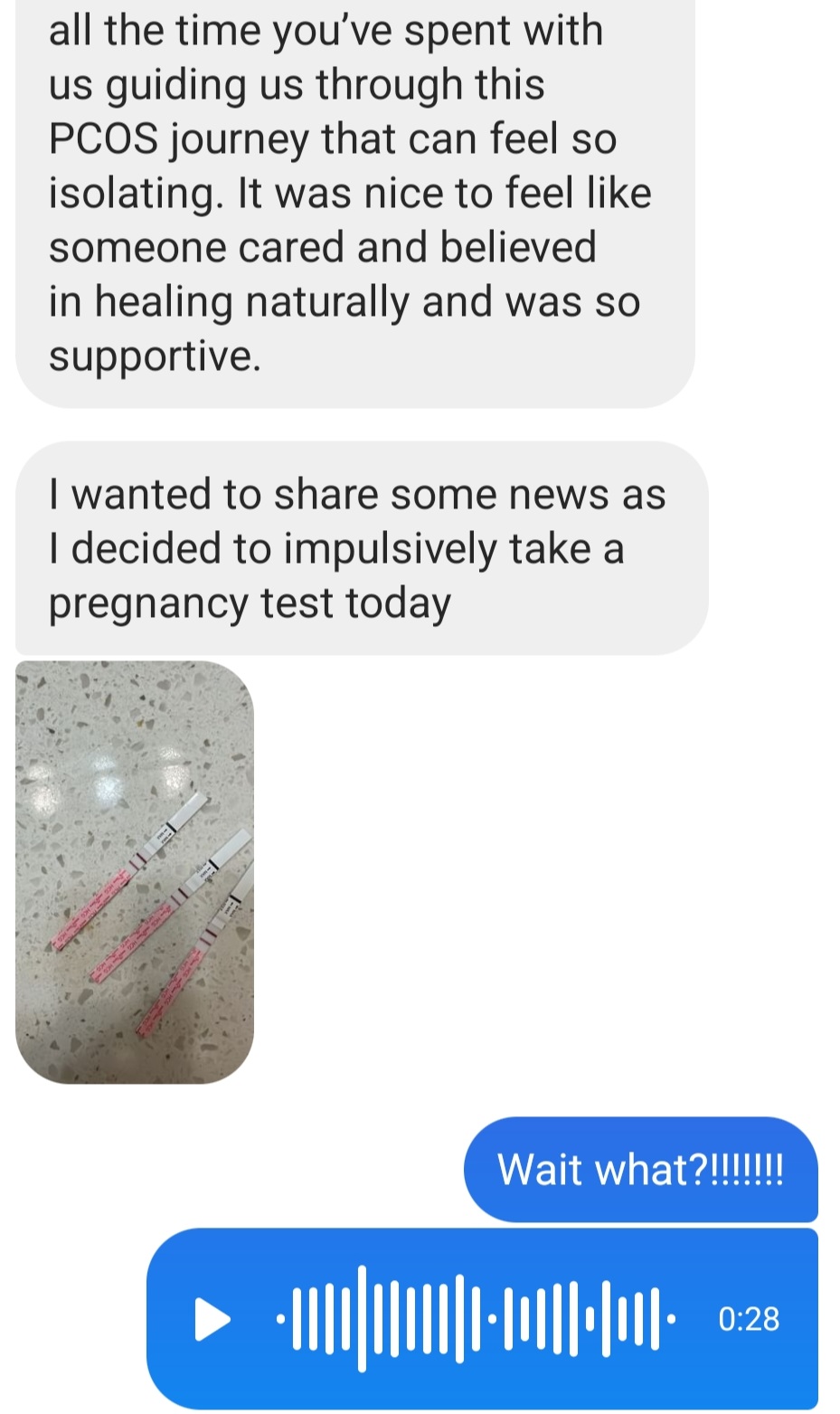 I've seen the depths of a PCOS fertility journey and I know how tough it is - helping people just like you has given my life so much purpose and meaning and seeing the people I work with get pregnant and become parents makes every sh*tty moment I went through, worth it.
