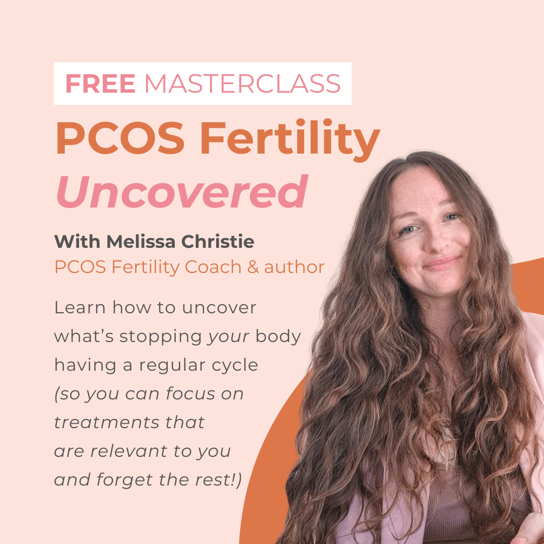 Get instant access to my FREE PCOS Fertility Uncovered Masterclass where I lay out the ESSENTIAL (but so often missed!) steps you can start taking TODAY to regulate your cycle and get pregnant.